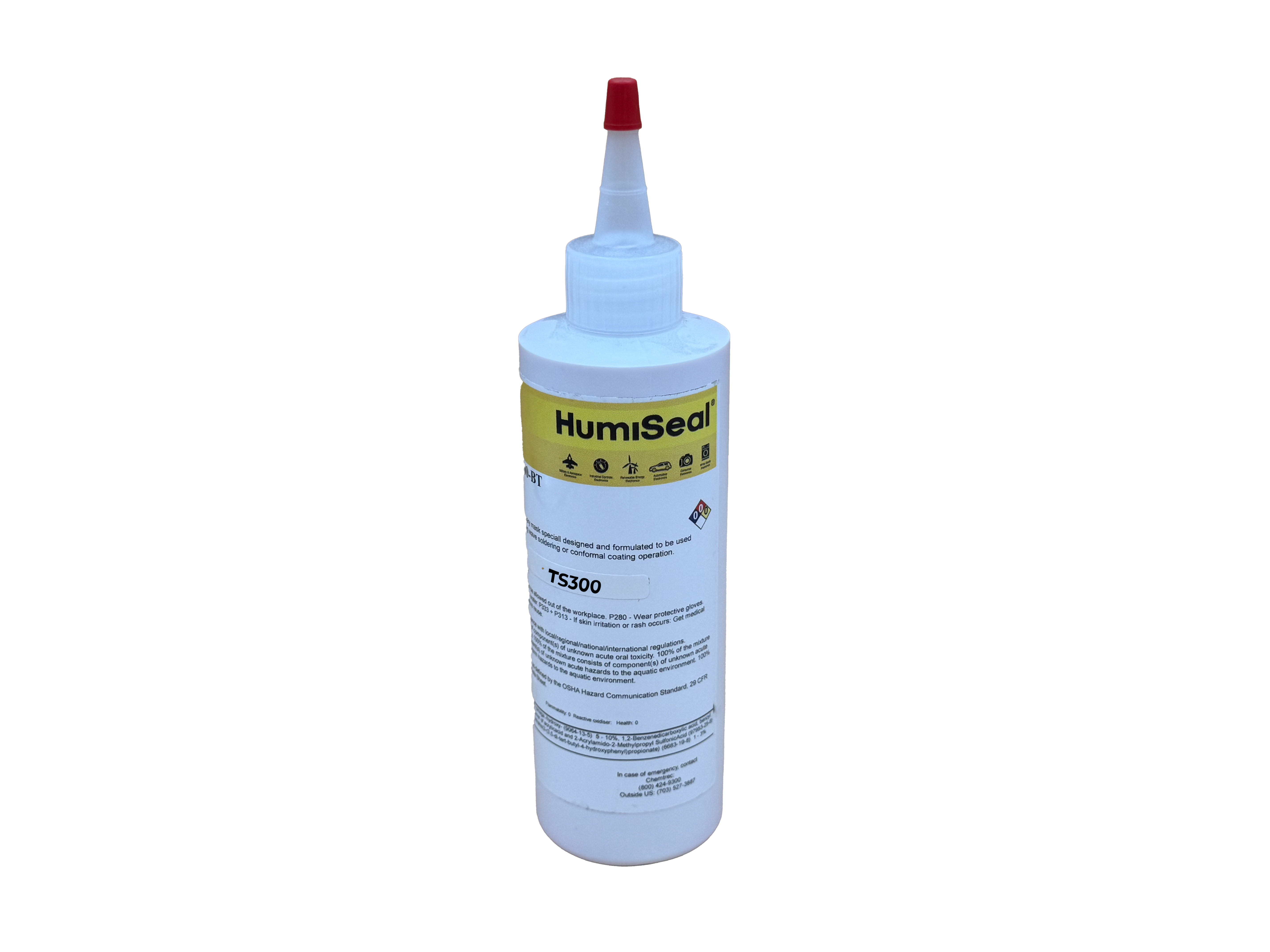 TS300 can be applied directly from the bottle or with a brush, curing time is approx 30 minutes. It is easy to peal off and don't leave any residues on the PCB.
